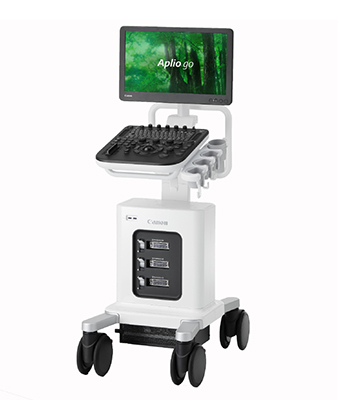 部屋のスペースに限りがある場合,従来装置の奥行では届きにくかった頸動脈エコーでも,患者さんの位置を変えることなく,装置ごと軽々と前後移動していただくことが可能です。奥行602mmのコンパクトなデザインで,無理な検査態勢にならずにゆとりをもった空間で検査していただくことが可能です。さらに,Aplio goは約45Kgで従来比※マイナス45%の計量設計を実現。安定感のあるホイルで段差も軽々と越えていくことが可能です。またモニタは前方へ倒すことが可能です。