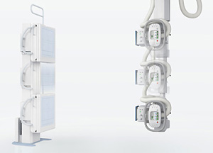 操作パネルを搭載したX線管保持装置等の組合せにより,撮影室内での操作性を大幅に向上した一般撮影システムです。