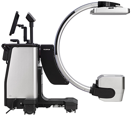 回診車と外科用Cアームの機能を兼ね備え,本体重量約249kgと軽量・コンパクトを実現。限られた設置スペースでも扱いやすく,開口部83cmの広幅Cアームが術中の素早いアプローチを可能にします。