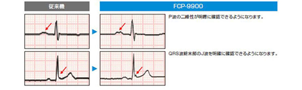 心電計ディスプレイ上で高品質な波形を見て判読できるように,高品質ディスプレイを採用しました。