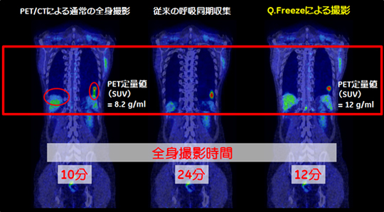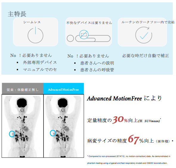 - 更なる画質の向上,短時間収集,低投与(低被ばく)化が可能に。