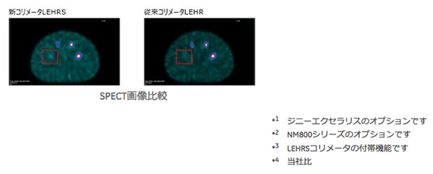 新コリメータ「LEHRS(Low Energy High Resolution Sensitivity)」*2を開発。従来の分解能の良さはそのままに,感度は大幅にアップします。また,新機能「SwiftScan」*3もコリメータとともに搭載可能で,これにより検出器が移動する間のデータ収集も可能となることから,Whole Body収集,SPECT収集ともに最大で25%*4の収集時間短縮が実現します。