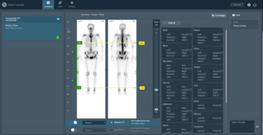 例えば,骨シンチ検査などでWBスキャンの後,SPECT/CTスキャンを追加するかどうか確認が必要になることがあります。Smart Consoleなら,遠隔でWB画像を確認して,追加の撮影範囲を画像上で的確に指示することが可能です。