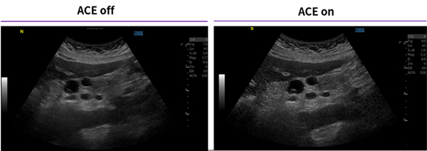 膨大なデータからノイズ部分と組織部分の位相の歪みを判断し,ノイズを落とし,組織の信号を選択的に強調。ピクセル&フレーム毎にリアルタイムな調整が可能で,対象臓器や走査断面に合わせて適応したイメージチューニングです。