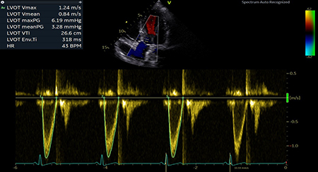 2クリックで広範囲のドプラ計測が完了します。Freeze–Measure,2クリックでドプラトレースと関連する計測値のフルセットが瞬時に画面に表示されます。