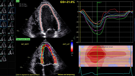 断面認識機能を搭載したAFI LVは,左心室の全体的のGLSとセグメントごとのストレインを半自動で定量化します。
