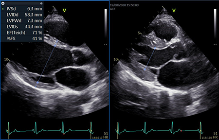 2クリックで広範囲のドプラ計測が完了します。Freeze–Measure,2クリックでドプラトレースと関連する計測値のフルセットが瞬時に画面に表示されます。