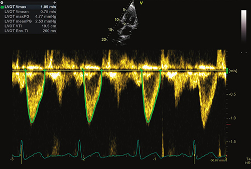 2クリックで広範囲のドプラ計測が完了します。Freeze–Measure,2クリックでドプラトレースと関連する計測値のフルセットが瞬時に画面に表示されます。
