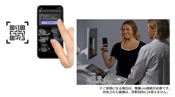 二次元コードを介して,患者様のスマートフォンへ簡単に画像共有が可能なVoluson Image Portalや,タッチパネルに触れると振動で操作感を伝える疑似感触機能を搭載しました。