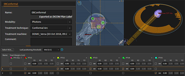 「Treat」機能により指定したターゲットにMLCをフィッティングします。「Segment weight最適化」により,さらなる線量分布改善が期待できます。