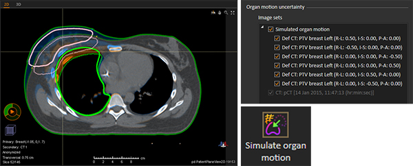 臓器の動きを反映した画像を生成し,Robust optimization(最適化) と Evaluation(評価)に利用できます。