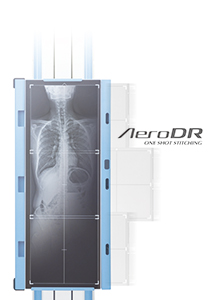 CsIシンチレータにより「高画質・低被曝」を両立するAeroDR。AeroDRを複数枚組合せることにより,従来からニーズの多い1ショットでの長尺撮影を実現。また,体格の大きな患者様でも十分にカバー可能な,17x48インチと大きな撮影領域に対応しています。