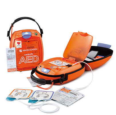 国内で開発,製造されたAEDです。当社従来品(AED-2100)よりも小型軽量化,セルフテストのさらなる充実を図り,-5℃の環境でも操作ができるなど,使用環境を拡大。電極パッドは国内自社工場で生産した国産電極パッドを採用しております。AEDリモート監視システムが利用できるため,AEDの状態や消耗品の期限等の情報をWebで確認でき,AED本体に異常が発生した場合や消耗品の期限が近づいた場合に登録いただいているメールアドレスにお知らせいたします。