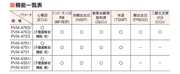 | 波形表示項目: | 心電図(最大2波形),呼吸曲線,観血血圧波形*1(最大2波形),脈波,炭酸ガス分圧曲線*1 |
