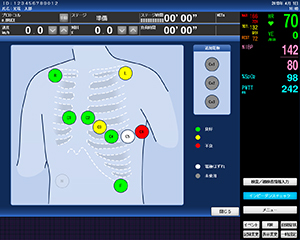 - 電極装着位置を画面表示。インピーダンスチェック機能により,検査開始前に電極装着状態を確認できます。