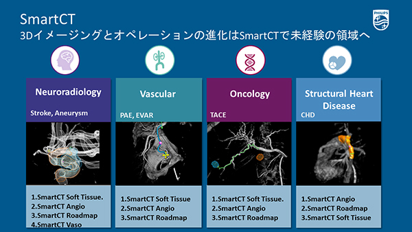これまでよりも簡単な操作性を実現し,3D画像の計測や解析機能が向上した新アプリケーションです。可視化されたガイダンスとAzurion R2によって,3Dのセッティング,取得,解析の一連の操作が直観的に行えます。