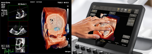 直観的な操作で(TouchVue),フォトリアリスティックな3Dレンダリング画像の描出が可能です(TrueVue)。3Dデータの解析ソフトウェアでは,AI技術1を使用した三尖弁を評価するための3D Auto TVと,逆流を評価するための3D Auto CFQに対応します。