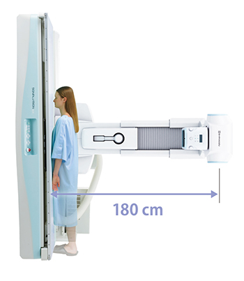 胸部撮影に有用な,SID 1.8m引き伸ばし機能