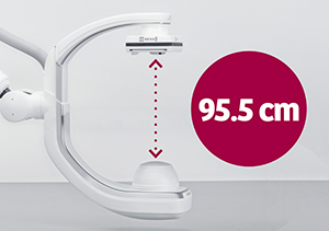 最大SID(X線焦点-FD間距離)を130 cmに広げたことでCアーム内のフリースペースを95.5 cmに拡大。患者へのアクセス性や,器具操作のための作業スペースを確保し,安全・確実・ 迅速な手技をサポートします。
