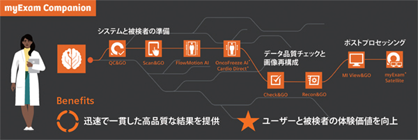 新たなPET/CTイメージング体験で,その先へ。myExam Companionが搭載され,検査前の品質管理から撮像,画像再構成,品質管理,画像処理・転送まですべてをサポートすることで,効率的な業務フローを実現し,被検者と医療スタッフの体験価値の向上に貢献します。