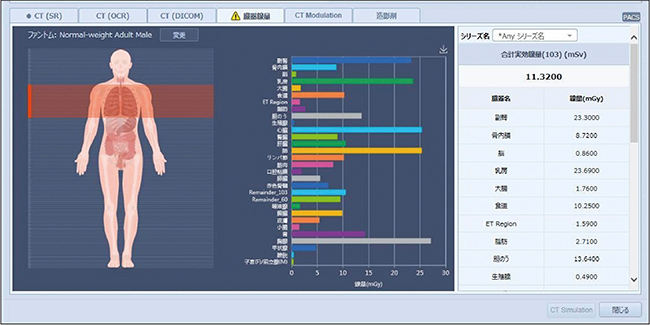 図2 INFINITT DoseMの臓器線量表示画面