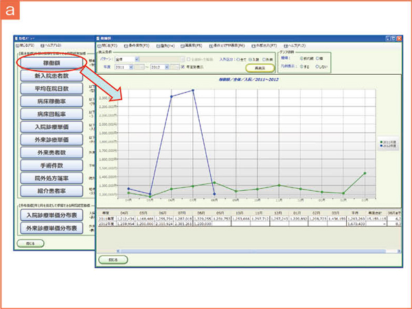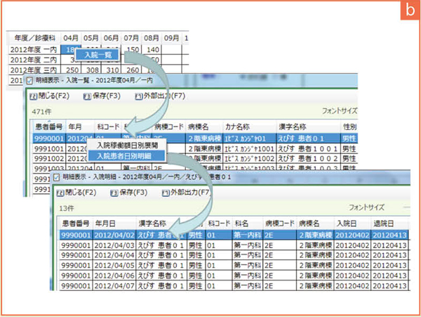図1 稼働診療実績機能 b:ドリルダウンによる分析が可能