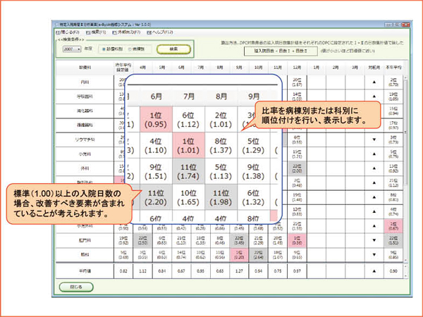 全国平均である入院期間Ⅱで比較することにより,診療科,病棟を公平に比較・評価することができます(図3)。