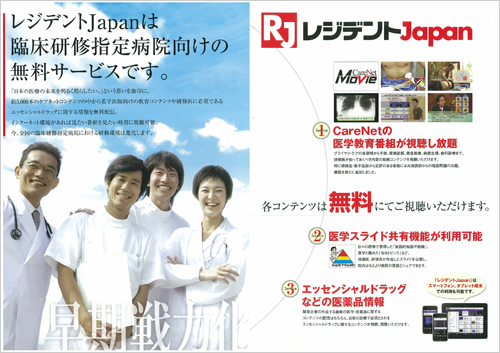 2011年10月,ケアネット社は,システム全体の利用者数を増やすべく,Resi-Share Pyramidの利用以外に,人気の医学動画教材「CareNet Movie」も合わせて視聴できる画期的なeラーニング・プラットフォーム「レジデントJapan 」をスタートした(図10)。全国の臨床研修指定病院を対象に,これまで有償だったサービスを無料提供することになった(iOS用アプリあり )。2011年12月現在,レジデントJapanに参加している臨床研修指定病院は,200を超えている。