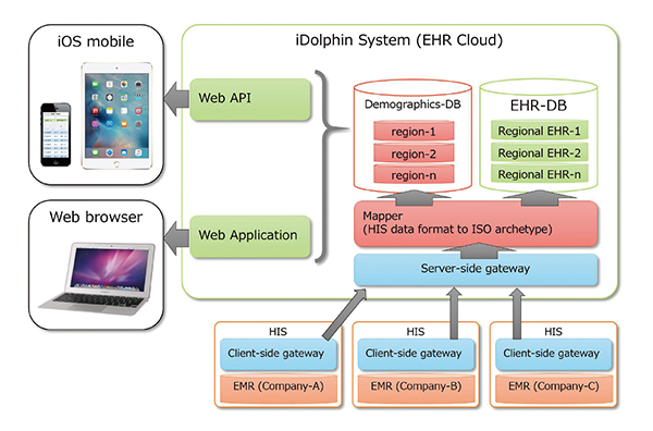 NPO法人日本医療ネットワーク協会(JMNA)1)を中心として,2000年ごろから患者個人の一生涯の医療記録を永続保存することを目的としたEHRシステムの開発が進められてきた。iDolphin Projectと呼称し,京都府下,宮崎県下を中心として,過去十数年にわたり参加医療機関の診療情報を蓄積している。患者のうち希望者は,地域の医療連携協議会(京都府下では「まいこネット」,宮崎県下では「はにわネット」)にユーザーとして登録することで,参加医療機関を受診した際の記録を閲覧できるようになる。本来的にはすべての診療情報が患者に帰属するという解釈も考えられるが,診療上の誤解などを避けるため,提供する情報は参加医療機関の各診療科のポリシーに準拠している。おおむねすべての診療科が処方,検査結果,退院時サマリなどの提供に同意している。例えば,まいこネットでは,患者が血液検査などを受けた場合,翌日の夜半には検査結果をインターネットを通じて閲覧することができる。検査結果を次回の診察時まで待ってから聞く場合に比べ,患者の診療に対する参加意識に雲泥の差を生む。