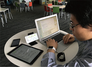 図4 モバイル系医療アプリ開発中の平山氏(MOSS)