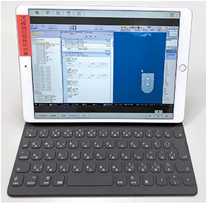 本システムは,既存の診療支援端末の画面を遠隔から操作用タブレット端末上で表示・操作するものであるため,サーバやアプリケーションの修正が不要で,ベンダーを介さずに自前で安価かつ短期間でシステムを構築することができた。また,実際の運用を通してシステムが安定して機能し,本システムの有用性を確認した。一方,利用している操作用タブレット端末が小型であることに起因している運用上の課題がいくつか生じた。操作用タブレット端末の一体型キーボードが小型であり入力しにくいという指摘があり,利用者の希望に応じてBluetooth対応のキーボードを別途用意して利用してもよいことにした。また,主に据え置きで利用している利用者からピンチアウト・ピンチインして画面の拡大・縮小操作が煩わしく,画面の大きいPCで利用したいという希望が寄せられたが,当面PCでのサービスの提供は想定していないため,図5に示すように大きなディスプレイに操作用タブレット端末の画面を外部出力して利用してもらうことにした。これ以外に発生した課題としては,診療支援端末を無線LAN接続で利用していたため,電波状況により操作時の画面の反応に遅延が生じることがあったが,有線LAN接続で利用するように運用を見直すことで対応した。