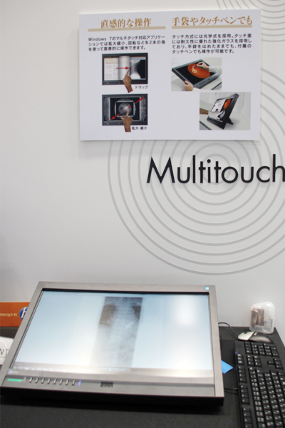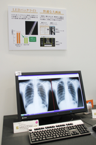 そのほか,モノクロ画像の表示に最適化しマルチタッチが可能なタッチパネルモニター,LEDバックライトを採用し消費電力の低減とコストを抑えた電子カルテ表示用モニターなどを展示したほか,モニター品質管理にAndroid端末を利用するソリューションを参考出展として紹介した。
