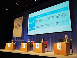 日立が注力する各分野の第一人者や有識者が議論するビジネスセッションも両日にわたって企画され,19日にはヘルスケア分野のビジネスセッション5「データが拓く次世代医療イノベーション」が行われた。2018年は,オンライン診療の保険点数化や次世代医療基盤法の施行など,医療のICT利用,デジタル化,データ化開始の節目の年となったことから,本テーマが設定された。モデレータを藤井省吾氏(日経BP社執行役員日経BP総研副所長,マネジメントソリューション局長,メディカル・ヘルスラボ所長)が務め,武藤真祐氏〔(株)インテグリティ・ヘルスケア代表取締役会長,医療法人社団鉄祐会理事長〕,隈丸加奈子氏(順天堂大学医学部放射線診断学講座准教授),渡部眞也氏〔(株)日立製作所執行役常務ヘルスケアビジネスユニットCEO〕の3名が登壇した。武藤氏はオンライン診療,隈丸氏は画像検査における情報共有と活用,渡部氏はデータに基づいた日立の医療イノベーションについて発表した。