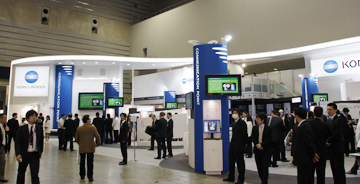 コニカミノルタヘルスケアは,4月8日に発表した「infomity連携BOX」を中心にして展示を構成した。連携BOXは,医療機関向けのネットワークサービス「infomity」の新たなサービスとして同社のデータセンターとASPによる各種サービス(患者紹介/逆紹介,遠隔読影など)を提供する。その他,独自のアルゴリズムを搭載しマンモグラフィの診断支援(CAD)を行う「NEOVISTA I-PACS CAD typeM」,開業医向けのカラー超音波画像診断装置「SONIMAGE 513」などを出展していた。 |
