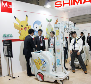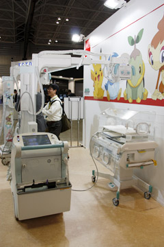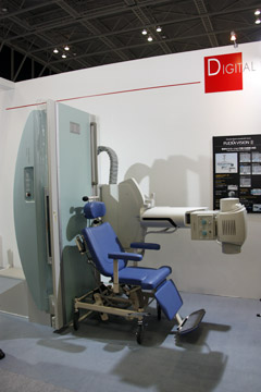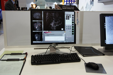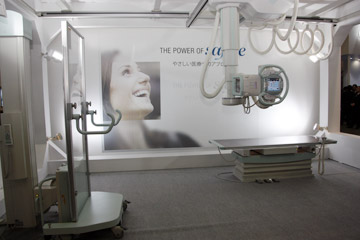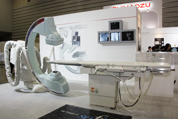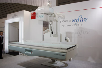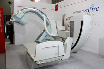 X 線テレビシステムでは,Cアームテーブル「Cvision safire 17」も展示した。SONIALVISION safire17同様,17インチの直接変換方式FPDを搭載した装置で,多方向からのアプローチを可能とし,上部・下部消化管領域検査をはじめ,腹部・下肢領域のDSA,非血管系IVRまで幅広く対応する。