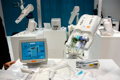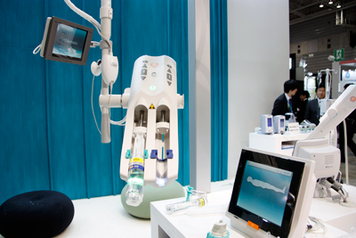 根本杏林堂は,新製品としてCT用自動注入器「DUALSHOT GX7」を出展した。インターフェイスを一新し操作性の向上を図るとともに,小児用をはじめ,さまざまなプロトコールを組み込むことが可能となった。また,2筒式インジェクタを備えた血管用造影剤自動注入器「PRESS DUO」は,造影剤と生理食塩水の2本のシリンジを装着することで,自由に希釈濃度を設定して注入することができる。ひとつの検査で造影剤の濃度変更が必要な場合にも,シリンジ乗せ替えの手間がなく,かつ衛生的に行える。