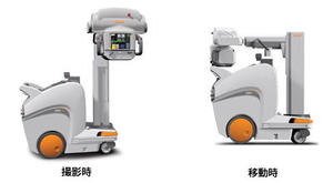 機器重量を充分に考慮し,後両車輪に独立した駆動サポートモーターを搭載することで,前進,後退,進路変更も軽々と行うことができる。また,管球は片手での操作を想定し,回転,チルトも容易に行えるよう設計されている。アームの進展,支柱の回転も同様に操作性を確保している。