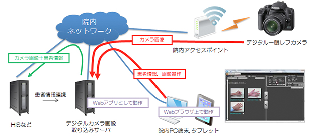 近年医療業界においては,病院内で撮影した大量のデジタルカメラ画像の処理工程が複雑で,患者データとして有効に活用できない,オンライン化されていないためオフラインメディアを介しての登録作業が複雑でセキュリティ上問題になりかねない,といった課題が出てきている。