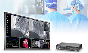 LMM0802は,X線透視装置や内視鏡など様々なシステムから送信される医療情報を収集し,管理する信号配信マネージャー。RadiForce LS580Wと組み合わせることで,信号配信マネージャーが収集した複数の医療情報を,対角58インチの大画面上に一度に,またそれぞれ大きさ,位置ともに自在に配置することが可能である。この大型モニターシステムの使用により,手術室の画像表示の自由度が向上する。