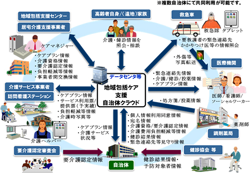 「地域包括ケア支援自治体クラウドソリューション」の概要図