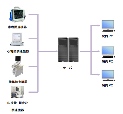 現在,日本国内における多くの病院,クリニック他医療機関においては,電子カルテ等医療情報化が急速に進み,病院内の多様な検査機器や患者監視装置等から発生する検査結果データをダイレクトインタフェースにより収集・管理・加工し,診断情報として有効活用できる検査結果データの電子化の必要性が高まっている。しかし,これらソリューションの導入コストは高く,各医療機関において大きな負担となっている。また,日本においては 検査機器インターフェースやビューワソフトウェアについては検査機器メーカーでの販売が主流であり競合原理が働かず価格が下がらない現状がある。