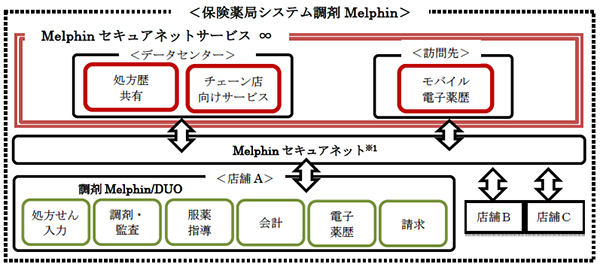 三菱電機(株)は,保険薬局向けシステム「調剤 Melphin(メルフィン)」の新たなサービスとして薬局での薬の処方履歴の共有化などにより,患者へのサービス向上を実現する「Melphin セキュアネットサービス ∞(インフィニティ)」を7月15日に発売する。