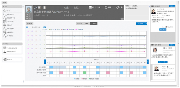 コニカミノルタは,病院間での情報共有サポートや,遠隔読影支援サービスなど,医療機関の診療を様々なかたちで支援するICTサービスプラットフォーム「infomity」を提供し,好評を得ているが,このたび「infomity」に,多職種協働による在宅チーム医療を支援する「在宅メディケアクラウド」を新たに加えることとした。