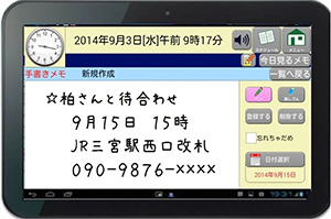 必要なときに手書きメモを取り,所定の日付に貼り付けができる。その日になると,「今日見るメモ」を通知する。
