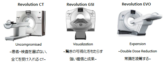 2025年型医療モデルで高度急性期を目指す医療機関のニーズに対応するために,2014年4月医学放射線学会でGE製のCT最上位機種として「Revolution CT(レボリューション・シーティー)」を発表した。 Revolution CTは,「分解能」「スピード」「カバレージ」というCTに求められる三大要素を妥協することなく最高レベルで追求してきた。今回,Revolution CTの技術を顧客のニーズに合わせて展開し,「Revolution Family」として「Revolution GSI」,「Revolution EVO」のさらなる2機種を市場に投入する。