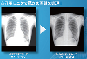 汎用モニタで画像を参照されている場合,FVT-airでDICOMカーブに対応させることで医用画像が見易くなる。新たにモニタを購入する必要がないため費用面のメリットもある