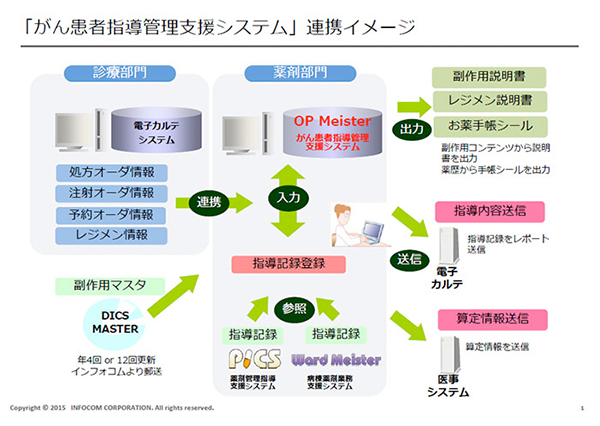 「OP Meister」は,がん患者への投薬指導に関する院内/薬局業務をサポートするシステムとして新たに開発し,提供を開始するもの。