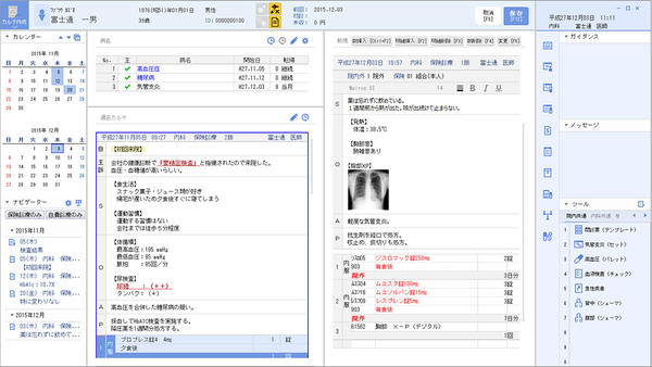 カルテ入力の際には,初回来院時には検査,2回目来院時には処置,というような,1人の患者の診療が複数日に渡る場合,電子カルテに入力する処置・処方予定などをまとめて入力できるようになった。また,電子カルテを入力するための各種ツールを起動するショートカットキーの追加や,処方監査機能により発見されたエラーを修正する部分への自動的な移動などの機能改善も図っている。
