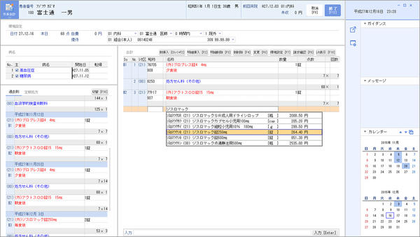 また,日々の会計入力中に,その月のそれまでのレセプト電算データと過去の月次レセプト電算データを表示し,月をまたがって実施する検査や処方を確認できる。これにより,検査予定や処方の誤りなどの防止と,会計手続の迅速化・効率化を支援する。