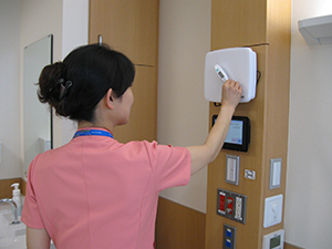 これまで,バイタルデータの入力は,看護師がノートパソコンなどから電子カルテを開き,測定機器に表示される患者のデータを見て手入力する,あるいは,看護師が紙や手にデータをメモしておき,ナースステーションに戻ってから手入力するといった作業が一般的であった。そのため,入力に手間がかかり,患者の取り違えやデータの入力間違い,入力忘れに繋がる恐れがあった。これに対し,「VDT」を用いることで,手間やリスクを大幅に軽減することができ,リアルタイムに電子カルテへデータを集約することができる。